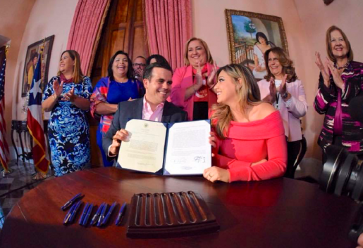 Gobernador junto a la Primera Dama en el Día Internacional de la Mujer Trabajadora, firma la Ley 81-2018, que crea el Programa del Maletín Empresarial para la Mujer.